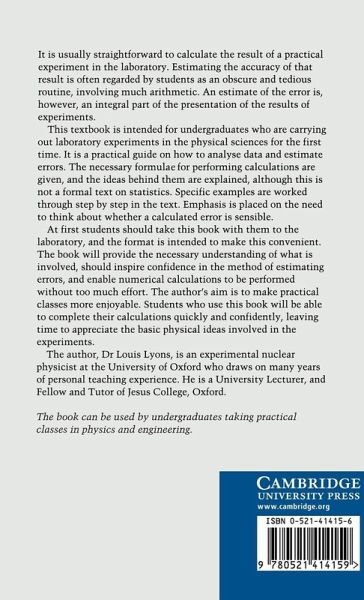 It is usually straightforward to calculate the result of a practical experiment in the laboratory. Estimating the accuracy of that result is often regarded by students as an obscure and tedious routine, involving much arithmetic. An estimate of the error is, however, an integral part of the presentation of the results of experiments. This textbook is intended for undergraduates who are carrying out laboratory experiments in the physical sciences for the first time. It is a practical guide on how to analyse data and estimate errors. The necessary formulas for performing calculations are given, and the ideas behind them are explained, although this is not a formal text on statistics. Specific examples are worked through step by step in the text. Emphasis is placed on the need to think about whether a calculated error is sensible. At first students should take this book with them to the laboratory, and the format is intended to make this convenient. The book will provide the necessary understanding of what is involved, should inspire confidence in the method of estimating errors, and enable numerical calculations without too much effort. The author's aim is to make practical classes more enjoyable. Students who use this book will be able to complete their calculations quickly and confidently, leaving time to appreciate the basic physical ideas involved in the experiments.