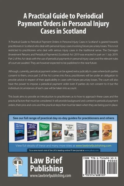 'A Practical Guide to Periodical Payment Orders in Personal Injury Cases in Scotland' is geared towards practitioners in Scotland who deal with personal injury cases involving future pecuniary losses. This is not restricted to practitioners who deal with serious injury cases in the traditional sense. The Damages (Investment Returns and Periodical Payments) (Scotland) Act 2019 was enacted in part on 1 July 2019. Part 2 of this Act deals with the use of periodical payments in personal injury cases and the relevant rules of court are awaited. They are however expected to be published in the near future. Although, currently, periodical payment orders can be agreed extra-judicially in cases where both parties consent to them, once part 2 of the Act comes into force, practitioners will be under an obligation to provide advice in respect of their applicability in cases with future pecuniary losses. The court will also have the power to impose a periodical payment order even if parties do not consent to it but the individual circumstances of each case will be taken into account. This book aims to provide an introduction to practitioners as to how to approach these cases and the practical factors that must be considered. It will provide background and context to periodical payment orders, their pros and cons and the practical steps that must be taken when they are being put in place.