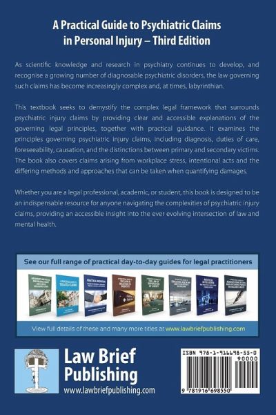 This textbook seeks to demystify the complex legal framework that surrounds psychiatric injury claims by providing clear and accessible explanations of the governing legal principles, together with practical guidance. It examines the principles governing psychiatric injury claims, including diagnosis, duties of care, foreseeability, causation, and the distinctions between primary and secondary victims. The book also covers claims arising from workplace stress, intentional acts and the differing methods and approaches that can be taken when quantifying damages. Whether you are a legal professional, academic, or student, this book aims to be an indispensable resource for anyone navigating the complexities of psychiatric injury claims, providing an accessible insight into the ever evolving intersection of law and mental health. CONTENTS 1. Introduction 2. Claims in Negligence and Psychiatric Injury 3. Diagnosis 4. Nervous Shock 5. Primary Victims Involving Physical Injury 6. Primary Victims Where There Is No Physical Injury: Pure Nervous Shock Claims 7. Rescuers and Involuntary Participants 8. Secondary Victims 9. Stress at Work Claims: An Overview 10. The Hatton Guidelines 11. Stress at Work Claims and Foreseeable Harm 12. Stress at Work and the Breach of Duty of Care 13. Stress at Work Claims and Bullying 14. Breach of Contract in Stress at Work Claims 15. Causation and Apportionment in Stress Claims 16. The Equality Act 2010 in Stress Claims 17. Other Tortious Acts 18. Quantum and Evidence 19. General Damages 20. Special Damages 21. Triage Checklist