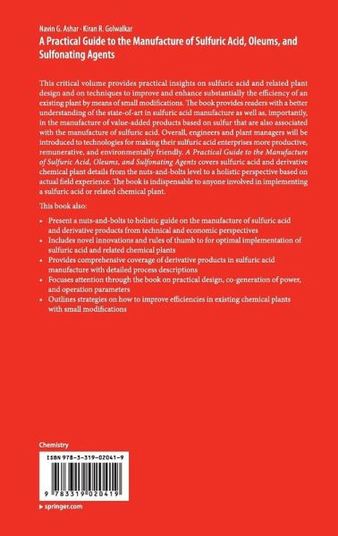 This critical volume provides practical insights on sulfuric acid and related plant design and on techniques to improve and enhance substantially the efficiency of an existing plant by means of small modifications. The book provides readers with a better understanding of the state-of-art in sulfuric acid manufacture as well as, importantly, in the manufacture of value-added products based on sulfur that are also associated with the manufacture of sulfuric acid. Overall, engineers and plant managers will be introduced to technologies for making their sulfuric acid enterprises more productive, remunerative, and environmentally friendly. A Practical Guide to the Manufacture of Sulfuric Acid, Oleums, and Sulfonating Agents covers sulfuric acid and derivative chemical plant details from the nuts-and-bolts level to a holistic perspective based on actual field experience. The book is indispensable to anyone involved in implementing a sulfuric acid or related chemical plant.