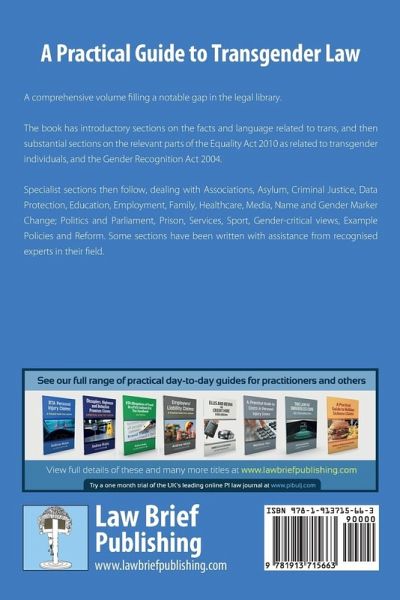 A comprehensive volume filling a notable gap in the legal library. The book has introductory sections on the facts and language related to trans, and then substantial sections on the relevant parts of the Equality Act 2010 as related to transgender individuals, and the Gender Recognition Act 2004. Specialist sections then follow, dealing with Associations, Asylum, Criminal Justice, Data Protection, Education, Employment, Family, Healthcare, Media, Name and Gender Marker Change; Politics and Parliament, Prison, Services, Sport, Gender-critical views, Example Policies and Reform. Some sections have been written with assistance from recognised experts in their field. ABOUT THE AUTHORS ROBIN MOIRA WHITE of Old Square Chambers (1995 Call) became the first barrister to transition in practice at the discrimination bar in 2011 and has lectured and written extensively on transgender matters for both employers and employees. She has been recognised by Chambers and Partners as the 'Go to' lawyer for trans matters and has an extensive practice in heavyweight discrimination. She acted in the Taylor v Jaguar Land Rover case in 2020. NICOLA NEWBEGIN of Old Square Chambers is a former solicitor who was called to the bar in 2008. As well as having a substantial employment and discrimination practice, including trans-related cases, she is recognised for her professional disciplinary practice, especially in healthcare. She has related interests in data protection and judicial review.