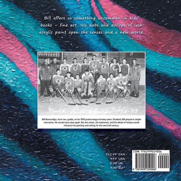 Author/ illustrator of the best-selling children’s book trilogy ‘The Moccasin Goalie’, Bill Brownridge has a new picture book: ‘A Prairie Boy’. With a story that opens your eyes, and artwork that opens the rest of your senses, Brownridge reveals a new world to kids with his thick ‘pointillism’ paintings presented in wow-ly colorful double-page spreads. For Tony LaDrew, living on the farm with his grandparents is a lonely life. He only has his pony Trix and his dog Bingo for company. And as a Metis boy, it isn’t easy making friends. But playing hockey makes all the difference to Tony - whether on a slough, on a road, or on a rink – he loves the action. Swooping down the ice is like flying, like another world. Too bad his grandfather doesn’t like hockey. On top of that, there’s a local tough guy giving him problems. At every turn, Tony seems to face another challenge. And now, with his big chance to join the team coming up, he has to take drastic action. * * * Brownridge opens a new dimension to kids with his impressionist paintings of kids at play. His application of dabs and dollops of ‘fat’ acrylic paint in the Van-Gogh technique of pointillism accentuate tone and dimension, the vivid swathes of colour and diagonals exclaim action, while the moody blends heighten the wideness of the world and us in it. As the books says, it’s like another world. And the door’s open. Take a step. Imagine reading a picture book together. You and your boy and girl look at the pictures together, take turns reading the words, compare words to pictures, talk about the people and the story. And then you talk about the ‘art’. But is it art or just funny drawings and amateur scribblings, it’s hard to tell. For once it’s nice to have the real deal. Real fine art. With Brownridge, a renowned Canadian artist with galleries across the country, with his introduction of fine art into the picture book, he opens the door to talk about colour and texture, light and shadow, style and theme, feelings and fears and awe and wonder – using kid’s language, of course, so they can understand. But you see, that’s the learning part, your exchange – the talking. The book doesn’t teach. It’s you and her, and him, you’re all teachers, all learners. Take a step.