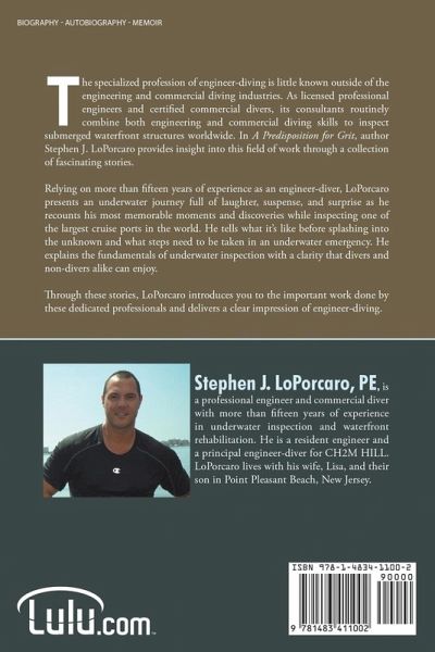 The specialized profession of engineer-diving is little known outside of the engineering and commercial diving industries. As licensed professional engineers and certified commercial divers, its consultants routinely combine both engineering and commercial diving skills to inspect submerged waterfront structures worldwide. In A Predisposition for Grit, author Stephen J. LoPorcaro provides insight into this field of work through a collection of fascinating stories. Relying on more than fifteen years of experience as an engineer-diver, LoPorcaro presents an underwater journey full of laughter, suspense, and surprise as he recounts his most memorable moments and discoveries while inspecting one of the largest cruise ports in the world. He tells what it's like before splashing into the unknown and what steps need to be taken in an underwater emergency. He explains the fundamentals of underwater inspection with a clarity that divers and non-divers alike can enjoy.