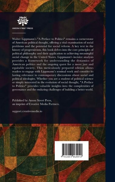 Walter Lippmann's "A Preface to Politics" remains a cornerstone of American political thought, offering a vital examination of social problems and the potential for social reform. A key text in the history of progressivism, this book delves into the core principles of political philosophy and their application to achieving meaningful social change in the United States. Lippmann's incisive analysis provides a framework for understanding the dynamics of American politics and the ongoing quest for a more just and equitable society. This meticulously prepared edition allows readers to engage with Lippmann's seminal work and consider its lasting relevance to contemporary discussions about social and political ideologies. Whether you are a student of political science or simply interested in the evolution of social thought, "A Preface to Politics" provides valuable insights into the complexities of governance and the enduring challenges of building a better world. This work has been selected by scholars as being culturally important, and is part of the knowledge base of civilization as we know it. This work is in the public domain in the United States of America, and possibly other nations. Within the United States, you may freely copy and distribute this work, as no entity (individual or corporate) has a copyright on the body of the work. Scholars believe, and we concur, that this work is important enough to be preserved, reproduced, and made generally available to the public. We appreciate your support of the preservation process, and thank you for being an important part of keeping this knowledge alive and relevant.