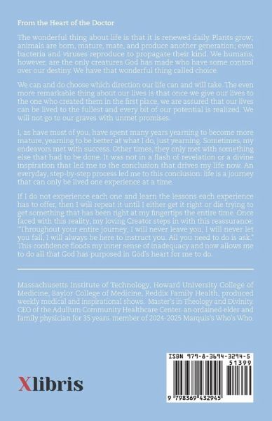 From the Heart of the Doctor The wonderful thing about life is that it is renewed daily. Plants grow; animals are born, mature, mate, and produce another generation; even bacteria and viruses reproduce to propagate their kind. We humans, however, are the only creatures God has made who have some control over our destiny. We have that wonderful thing called choice. We can and do choose which direction our life can and will take. The even more remarkable thing about our lives is that once we give our lives to the one who created them in the first place, we are assured that our lives can be lived to the fullest and every bit of our potential is realized. We will not go to our graves with unmet promises. I, as have most of you, have spent many years yearning to become more mature, yearning to be better at what I do, just yearning. Sometimes, my endeavors met with success. Other times, they only met with something else that had to be done. It was not in a flash of revelation or a divine inspiration that led me to the conclusion that drives my life now. An everyday, step-by-step process led me to this conclusion: life is a journey that can only be lived one experience at a time. If I do not experience each one and learn the lessons each experience has to offer, then I will repeat it until I either get it right or die trying to get something that has been right at my fingertips the entire time. Once faced with this reality, my loving Creator steps in with this reassurance: "Throughout your entire journey, I will never leave you, I will never let you fall, I will always be here to instruct you. All you need to do is ask." This confidence floods my inner sense of inadequacy and now allows me to do all that God has purposed in God's heart for me to do.