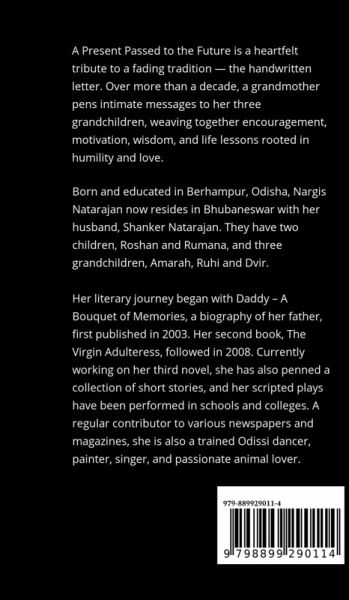 A Present Passed to the Future is a heartfelt tribute to a fading tradition - the handwritten letter. Over more than a decade, a grandmother pens intimate messages to her three grandchildren, weaving together encouragement, motivation, wisdom, and life lessons rooted in humility and love. In a world increasingly lived online, she reminds them - and us - that true life unfolds not through screens, but through real moments: face to face, eye to eye, under the open skies, amidst the simple beauty of nature. These letters, lovingly preserved, become a timeless legacy, a bridge between generations, and a gentle call to slow down, connect, and cherish the things that truly matter.