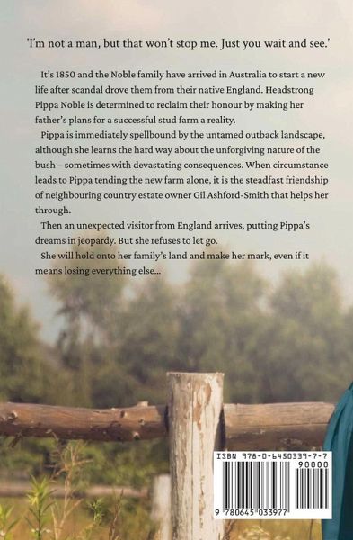 It's 1850 and the Noble family have arrived in Australia to start a new life after scandal drove them from their native England. Headstrong Pippa Noble is determined to reclaim their honour by making her father's plans for a successful stud farm a reality. Pippa is immediately spellbound by the untamed outback landscape, although she learns the hard way about the unforgiving nature of the bush - sometimes with devastating consequences. When circumstance leads to Pippa tending the new farm alone, it is the steadfast friendship of neighbouring country estate owner Gil Ashford-Smith that helps her through. Then an unexpected visitor from England arrives, putting Pippa's dreams in jeopardy. But she refuses to let go. She will hold onto her family's land and make her mark, even if it means losing everything else ...