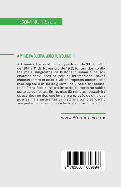 A Primeira Guerra Mundial, que durou de 28 de Julho de 1914 a 11 de Novembro de 1918, foi um dos conflitos mais sangrentos da história humana e causou enormes convulsões na política internacional: novos estados foram criados e vários impérios caíram. Este livro explora o início da guerra, incluindo o assassinato de Franz Ferdinand e o impacto do medo no súbito surto de combates. Em apenas 50 minutos, descobrirá os acontecimentos que levaram à eclosão de uma das guerras mais sangrentas da história e compreenderá o seu profundo impacto nas relações internacionais. Este livro simples e informativo oferece uma discussão aprofundada dos momentos-chave que levaram à eclosão da guerra, incluindo o confronto nos Balcãs e a formação de alianças entre as Potências Centrais e a Tríplice Entente. Inclui também uma descrição completa das primeiras batalhas, uma introdução valiosa às origens do conflito e uma avaliação do impasse, dando-lhe toda a informação essencial sobre a fase de abertura da Primeira Guerra Mundial.
