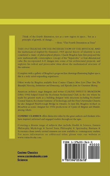 Think of the fourth dimension, not as a new region in space... but as a principle of growth, of change... -from "The Fourth Dimension as Time" This 1913 treatise on the intersection of the mystical and the mathematical implied by Einstein's 1905 special theory of relativity is now considered a classic of philosophical physics. Claude Bragdon here first proposed the now mathematically commonplace concept of the "hypercube," or four-dimensional cube (he incorporated 4-D designs into some of his architectural projects), and explores his radical and provocative ideas about the mathematical structure of the universe. Complete with a gallery of Bragdon's gorgeous line drawings illustrating higher space, this is a truly mind-expanding experience. Other works by Bragdon available from Cosimo Classics: More Lives Than One, The Beautiful Necessity, Architecture and Democracy, and Episodes from An Unwritten History. American architect, stage designer, and writer CLAUDE FAYETTE BRAGDON (1866-1946) helped found the Rochester Architectural Club, in the city where he made his greatest mark as a building designer with structures including Rochester Central Station, Rochester Institute of Technology, and the First Universalist Church; he also designed Peterborough Bridge in Ontario. In later life, Bragdon worked on Broadway as scenic designer for 1930s productions of Cyrano de Bergerac and Hamlet, among others.