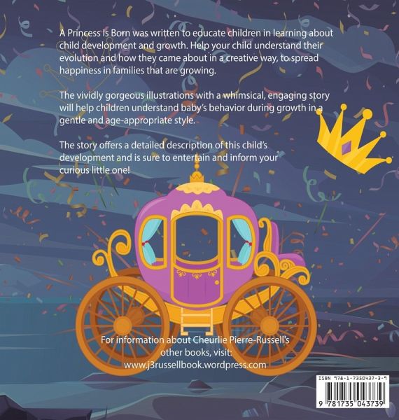 Want to teach your little ones all about how a baby is born? Help your toddlers learn all about it by following the growth and development of Princess Alani and her entry into the world! A Princess Is Born is an engaging introduction to reproduction for very young children designed to help them understand a baby's growth in a gentle, age-appropriate, and user-friendly style.The beautiful illustrations and bright, detailed and engaging description of this child's development told in the form of a captivating story by author Cheurlie Pierre-Russell are sure to entertain and educate your curious little one, making child growth simple to understand. That's not all, the Q&A format, with questions posed in the child's voice, allows the adult to guide the conversation to a satisfying conclusion. Did you know usually babies are born as a prince or princess? Everyone will enjoy learning fun facts in A Princess Is Born Book.
