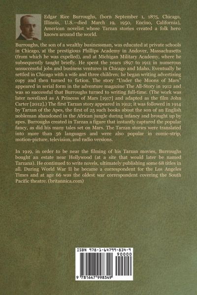 A Princess of Mars (1917) is a science fantasy novel by Edgar Rice Burroughs, the first of his Barsoom series. It is also Burroughs' first novel, predating his famous Tarzan series. Full of swordplay and daring feats, the novel is considered a classic example of 20th century pulp fiction. It is also a seminal instance of the planetary romance, a sub-genre of science fantasy that became highly popular in the decades following its publication. Its early chapters also contain elements of the Western. The story is set on Mars, imagined as a dying planet with a harsh desert environment. This vision of Mars was based on the work of the astronomer Percival Lowell, whose ideas were widely popularized in the late 19th and early 20th centuries. The Barsoom series inspired a number of well-known 20th century science fiction writers, including Ray Bradbury, Arthur C. Clarke, and John Norman, and was also inspirational for many scientists in the fields of space exploration and the search for extraterrestrial life, including Carl Sagan, who read A Princess of Mars when he was a child. (wikipedia.org)