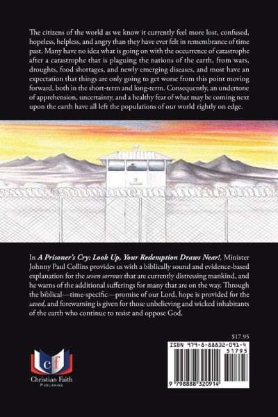 The citizens of the world as we know it currently feel more lost, confused, hopeless, helpless, and angry than they have ever felt in remembrance of time past. Many have no idea what is going on with the occurrence of catastrophe after a catastrophe that is plaguing the nations of the earth, from wars, droughts, food shortages, and newly emerging diseases, and most have an expectation that things are only going to get worse from this point moving forward, both in the short-term and long-term. Consequently, an undertone of apprehension, uncertainty, and a healthy fear of what may be coming next upon the earth have all left the populations of our world rightly on edge. In A Prisoner's Cry: Look Up, Your Redemption Draws Near!, Minister Johnny Paul Collins provides us with a biblically sound and evidence-based explanation for the seven sorrows that are currently distressing mankind, and he warns of the additional sufferings for many that are on the way. Through the biblical--time-specific--promise of our Lord, hope is provided for the saved, and forewarning is given for those unbelieving and wicked inhabitants of the earth who continue to resist and oppose God.