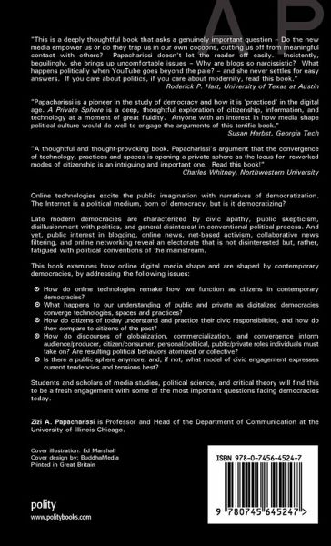 "An thoughtful and thought-provoking book. Papacharissi's argumentthat the convergence of technology, practices and spaces is openinga private sphere as the locus for reworked modes of citizenship isan intriguing and important one. Read this book!"