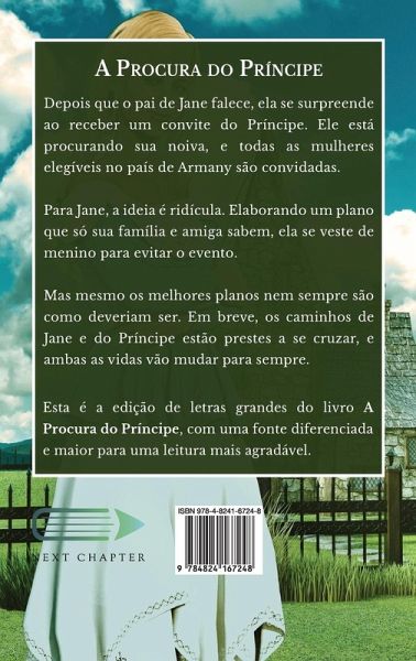 Depois que o pai de Jane falece, ela se surpreende ao receber um convite do Príncipe. Ele está procurando sua noiva, e todas as mulheres elegíveis no país de Armany são convidadas. Para Jane, a ideia é ridícula. Elaborando um plano que só sua família e amiga sabem, ela se veste de menino para evitar o evento. Mas mesmo os melhores planos nem sempre são como deveriam ser. Em breve, os caminhos de Jane e do Príncipe estão prestes a se cruzar, e ambas as vidas vão mudar para sempre. Esta é a edição de letras grandes do livro A Procura do Príncipe, com uma fonte diferenciada e maior para uma leitura mais agradável.
