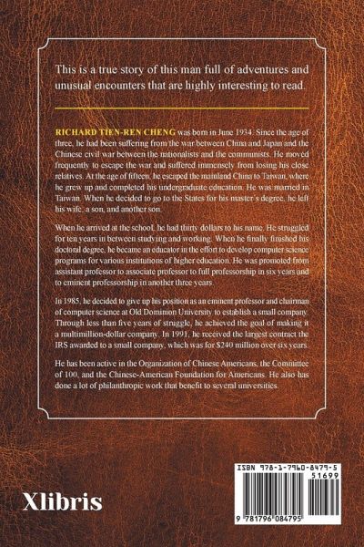 Richard Tien-Ren Cheng was born in June 1934. Since the age of three, he had been suffering from the war between China and Japan and the Chinese civil war between the nationalists and the communists. He moved frequently to escape the war and suffered immensely from losing his close relatives. At the age of fifteen, he escaped the mainland China to Taiwan, where he grew up and completed his undergraduate education. He was married in Taiwan. When he decided to go to the States for his master's degree, he left his wife, a son, and another son. When he arrived at the school, he had thirty dollars to his name. He struggled for ten years in between studying and working. When he finally finished his doctoral degree, he became an educator in the effort to develop computer science programs for various institutions of higher education. He was promoted from assistant professor to associate professor to full professorship in six years and to eminent professorship in another three years. In 1985, he decided to give up his position as an eminent professor and chairman of computer science at Old Dominion University to establish a small company. Through less than five years of struggle, he achieved the goal of making it a multimillion-dollar company. In 1991, he received the largest contract the IRS awarded to a small company, which was for $240 million over six years. He has been active in the Organization of Chinese Americans, the Committee of 100, and the Chinese-American Foundation for Americans. He also has done a lot of philanthropic work that benefit to several universities.