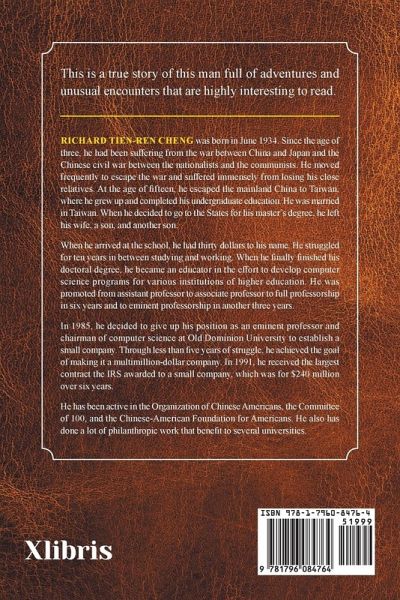 Richard Tien-Ren Cheng was born in June 1934. Since the age of three, he had been suffering from the war between China and Japan and the Chinese civil war between the nationalists and the communists. He moved frequently to escape the war and suffered immensely from losing his close relatives. At the age of fifteen, he escaped the mainland China to Taiwan, where he grew up and completed his undergraduate education. He was married in Taiwan. When he decided to go to the States for his master's degree, he left his wife, a son, and another son. When he arrived at the school, he had thirty dollars to his name. He struggled for ten years in between studying and working. When he finally finished his doctoral degree, he became an educator in the effort to develop computer science programs for various institutions of higher education. He was promoted from assistant professor to associate professor to full professorship in six years and to eminent professorship in another three years. In 1985, he decided to give up his position as an eminent professor and chairman of computer science at Old Dominion University to establish a small company. Through less than five years of struggle, he achieved the goal of making it a multimillion-dollar company. In 1991, he received the largest contract the IRS awarded to a small company, which was for $240 million over six years. He has been active in the Organization of Chinese Americans, the Committee of 100, and the Chinese-American Foundation for Americans. He also has done a lot of philanthropic work that benefit to several universities.