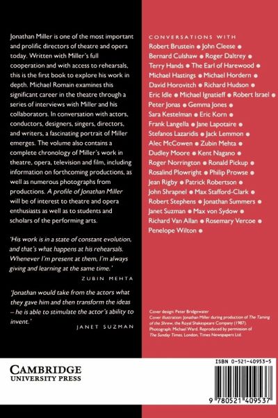 Jonathan Miller is one of the most important and prolific directors of theatre and opera today. Written with Millers full cooperation and with access to rehearsals, this is the first book to explore his work in depth. Michael Romain examines this significant career in theatre through a series of interviews with miller and his collaborators. It is rare that a director is willing or able to discuss his craft and rarer still to find colleagues who can recount trier impressions of rehearsals and productions. In a series of conversations with actors, conductors, designers, singers, directors, and writers, a fascinating portrait off Miller emerges.