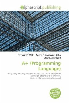Please note that the content of this book primarily consists of articles available from Wikipedia or other free sources online. A+ is an array programming language, which is derived from the programming language A, a dialect of APL with aggressive extensions. Arthur Whitney developed the "A" portion of A+, while other developers at Morgan Stanley extended it, adding a graphical user interface and other language features. A+ was designed for numerically intensive applications, especially those found in financial applications. A+ runs on many Unix variants, including Linux. A+ is a high-level, interactive, interpreted language.