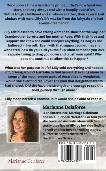 Once upon a time a handsome prince...... that's how fairytales start, and they always end with a happily ever after. With a tough childhood and an abusive father, then several bad choices with men, Lilly's life was far from the fairytale she had always dreamed of. Lilly felt blessed to have strong women to show her the way, her Grandmother Loretta and her mother Rose. With their love and support she knew she could conquer anything, as long as she believed in herself. Even with that support sometimes she wondered, how do you pick yourself up when someone you love is always trying to drag you down and crush your spirit? Why does she continue to allow this to happen? What was her purpose in life? Lilly sold everything and headed off, driving around Australia to find herself. Traveling alone to some of the most remote parts of Australia she wondered, would she ever find real love? The kind that her grandparents had shared. Did she have the strength and courage to see this bold journey through alone? Lilly made herself a promise, but would she be able to keep it?