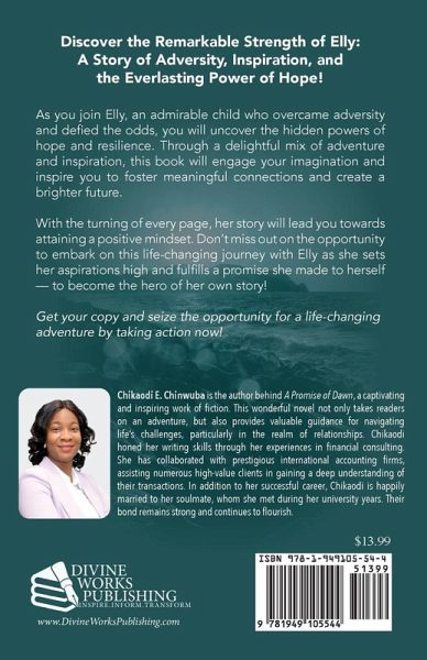 Discover the Remarkable Strength of Elly: A Story of Adversity, Inspiration, and the Everlasting Power of Hope! As you join Elly, an admirable child who overcame adversity and defied the odds, you will uncover the hidden powers of hope and resilience. Through a delightful mix of adventure and inspiration, this book will engage your imagination and inspire you to foster meaningful connections and create a brighter future. With the turning of every page, her story will lead you towards attaining a positive mindset. Don't miss out on the opportunity to embark on this life-changing journey with Elly as she sets her aspirations high and fulfills a promise to herself - to become the hero of her own story! Get your copy and seize the opportunity for a life-changing adventure by taking action now!