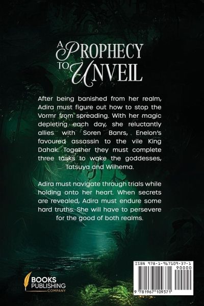 After being banished from her realm, Adira must figure out how to stop the Vormr from spreading. With her magic depleting each day, she reluctantly allies with Soren Banrs, Enelon's favoured assassin to the vile King Dahak. Together they must complete three tasks to wake the goddesses, Tatsuya and Wilhema. Adira must navigate through trials while holding onto her heart. When secrets are revealed, Adira must endure some hard truths. She will have to persevere for the good of both realms.