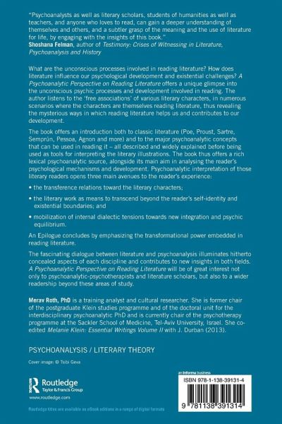 The fascinating dialogue between literature and psychoanalysis illuminates hitherto concealed aspects of each discipline and contributes to new insights in both fields. A Psychoanalytic Perspective on Reading Literature will be of great interest not only to psychoanalytic-psychotherapists and literature scholars, but also to a wider readership beyond these areas of study.