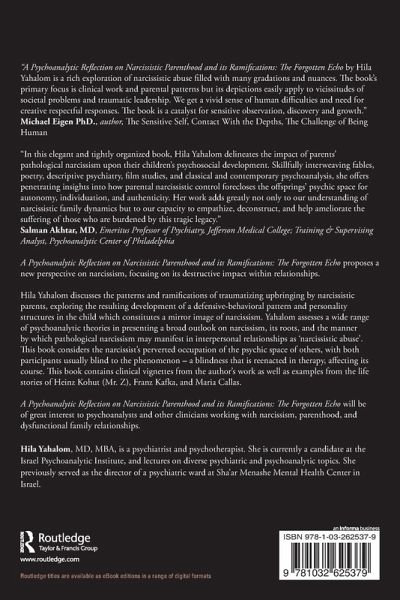 "A Psychoanalytic Reflection on Narcissistic Parenthood and its Ramifications: The Forgotten Echo by Hila Yahalom is a rich exploration of narcissistic abuse filled with many gradations and nuances. The book's primary focus is clinical work and parental patterns but its depictions easily apply to vicissitudes of societal problems and traumatic leadership. We get a vivid sense of human difficulties and need for creative respectful responses. The book is a catalyst for sensitive observation, discovery and growth."