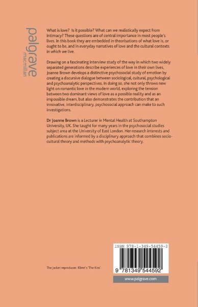 Organised around a single question: is love possible?, Brown's book provides conceptualisations of love and its possibility from sociological, philosophical and psychoanalytic viewpoints. She argues for the importance of a psychosocial understanding of love and provides a critical discussion of the philosophy and methods of Psychosocial Studies.