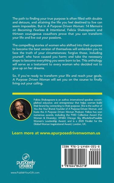 The path to finding your true purpose is often filled with doubts and detours, and attaining the life you feel destined to live can seem impossible. But in A Purpose Driven Woman: 14 Memoirs on Becoming Fearless & Intentional, Felicia Shakespeare and thirteen courageous coauthors prove that you can transform your life and live out your passions. The compelling stories of women who shifted into their purpose to become the best version of themselves will embolden you to face the truth of your circumstances; forgive those, including yourself, who have caused you harm; and take the necessary steps to become everything you were born to be. This anthology will serve as a testament to every woman who decided not to give up on her dreams. So, if you're ready to transform your life and reach your goals, A Purpose Driven Woman will set you on the course to finally living out your calling.