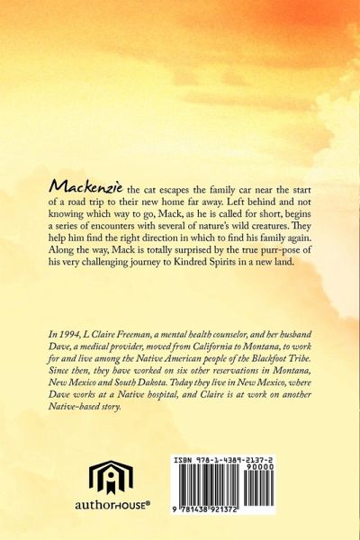 Mackenzie the cat escapes the family car at the start of their road trip to a new home far away. Not knowing which way to go, Mack begins a series of meetings with some of nature's wild creatures. They help him find the true purpose of his challenging journey to kindred spirits in a new land.