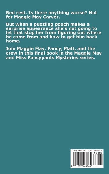 Bed rest. Is there anything worse? Not for Maggie May Carver. But when a puzzling pooch makes a surprise appearance she's not going to let that stop her from figuring out where he came from and how to get him back home. Join Maggie May, Fancy, Matt, and the crew in this final book in the Maggie May and Miss Fancypants Mysteries series.