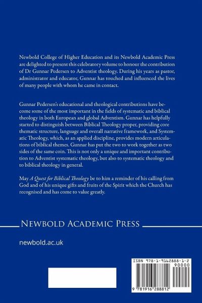 Gunnar Pedersen's educational and theological contributions have become some of the most important in the fields of systematic and biblical theology in both European and global Adventism. Gunnar has helpfully started to distinguish between Biblical Theology proper, providing core thematic structure, language and overall narrative framework, and Systematic Theology, which, as an applied discipline, provides modern articulations of biblical themes. Gunnar has put the two to work together as two sides of the same coin. This is not only a unique and important contribution to Adventist systematic theology, but also to systematic theology and to biblical theology in general.