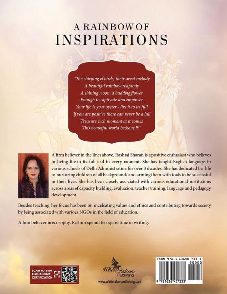 Reading about cultural and mythological roots should not be boring for young adults. This book attempts to bring forth stories from myriad Indian background in an enjoyable poetic fashion with engaging pictorial illustrations. It aims to fill the reader with pride and inspiration. About the Author: Rashmi Sharan is a committed academician of 40 years standing. Apart from teaching English Literature, writing and inspiring children has been her passion.