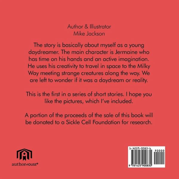 The story is basically about myself as a young daydreamer. The main character is Jermaine who has time on his hands and an active imagination. He uses his creativity to travel in space to the Milky Way meeting strange creatures along the way. We are left to wonder if it was a daydream or reality. This is the first in a series of short stories. I hope you like the pictures, which I've included.
