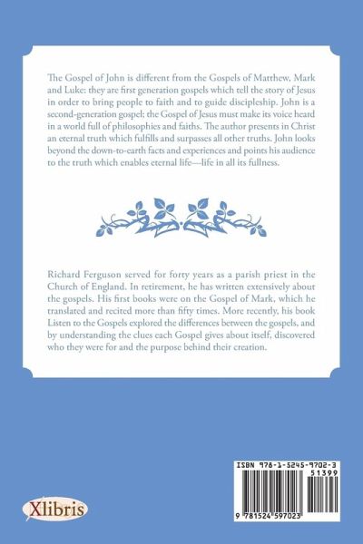 The Gospel of John is different from the Gospels of Matthew, Mark and Luke: they are first generation gospels which tell the story of Jesus in order to bring people to faith and to guide discipleship. John is a second-generation gospel; the Gospel of Jesus must make its voice heard in a world full of philosophies and faiths. The author presents in Christ an eternal truth which fulfills and surpasses all other truths. John looks beyond the down-to-earth facts and experiences and points his audience to the truth which enables eternal life—life in all its fullness.