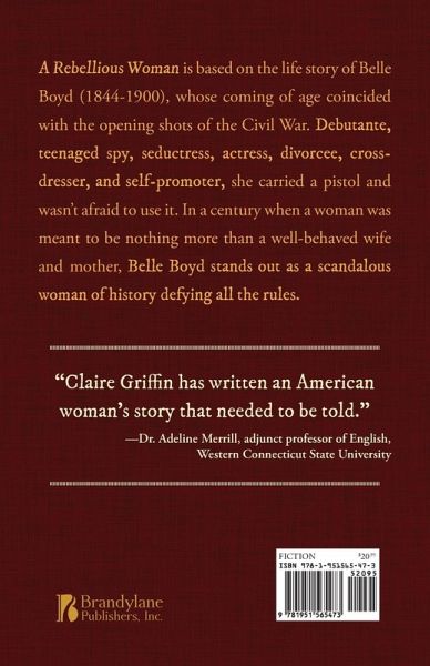 A Rebellious Woman is based on the life story of Belle Boyd (1844-1900), whose coming of age coincided with the opening shots of the Civil War. Debutante, teenaged spy, seductress, actress, divorcee, cross-dresser, and self-promoter, she carried a pistol and wasn't afraid to use it. In a century when a woman was meant to be nothing more than a well-behaved wife and mother, Belle Boyd stands out as a scandalous woman of history defying all the rules.