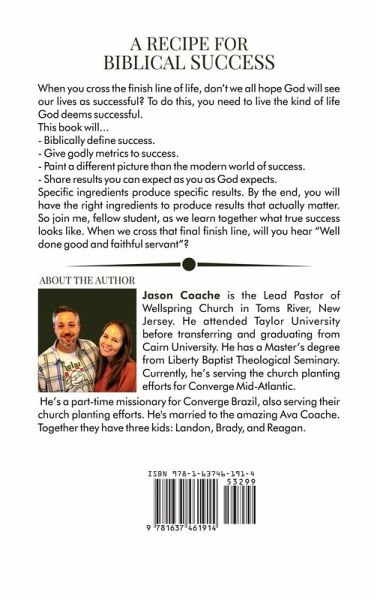 When you cross the finish line of life, don't we all hope God will see our lives as successful? To do this, you need to live the kind of life God deems successful. This book will...- Biblically define success.- Give godly metrics to success.- Paint a different picture than the modern world of success.- Share results you can expect as you as God expects.Specific ingredients produce specific results. By the end, you will have the right ingredients to produce results that actually matter. So join me, fellow student, as we learn together what true success looks like. When we cross that final finish line, will you hear "Well done good and faithful servant"?