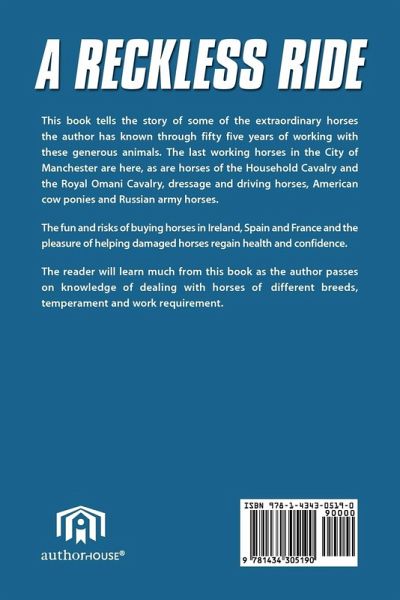 This book tells the story of some of the extraordinary horses the author has known through fifty five years of working with these generous animals. The last working horses in the City of Manchester are here, as are horses of the Household Cavalry and the Royal Omani Cavalry, dressage and driving horses, American cow ponies and Russian army horses.The fun and risks of buying horses in Ireland, Spain and France and the pleasure of helping damaged horses regain health and confidence.The reader will learn much from this book regarding dealing with horses of different breeds, temperament and work requirement.