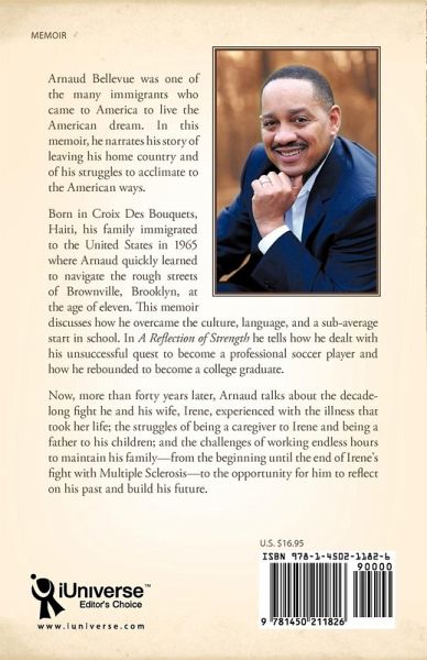 Arnaud Bellevue was one of the many immigrants who came to America to live the American dream. In this memoir, he narrates his story of leaving his home country and of his struggles to acclimate to the American ways. Born in Croix Des Bouquets, Haiti, his family immigrated to the United States in 1965 where Arnaud quickly learned to navigate the rough streets of Brownville, Brooklyn, at the age of eleven. This memoir discusses how he overcame the culture, language, and a sub-average start in school. In A Reflection of Strength he tells how he dealt with his unsuccessful quest to become a professional soccer player and how he rebounded to become a college graduate. Now, more than forty years later, Arnaud talks about the decade-long fight he and his wife, Irene, experienced with the illness that took her life; the struggles of being a caregiver to Irene and being a father to his children; and the challenges of working endless hours to maintain his family-from the beginning until the end of Irene's fight with Multiple Sclerosis-to the opportunity for him to reflect on his past and build his future.