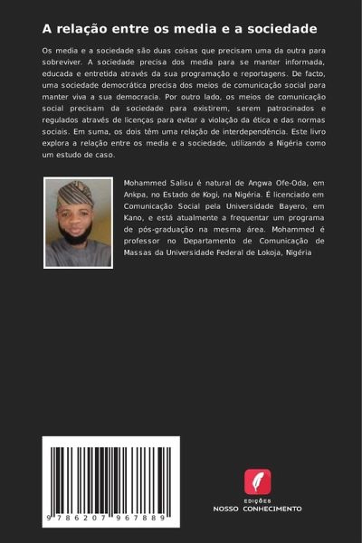 Os media e a sociedade são duas coisas que precisam uma da outra para sobreviver. A sociedade precisa dos media para se manter informada, educada e entretida através da sua programação e reportagens. De facto, uma sociedade democrática precisa dos meios de comunicação social para manter viva a sua democracia. Por outro lado, os meios de comunicação social precisam da sociedade para existirem, serem patrocinados e regulados através de licenças para evitar a violação da ética e das normas sociais. Em suma, os dois têm uma relação de interdependência. Este livro explora a relação entre os media e a sociedade, utilizando a Nigéria como um estudo de caso.