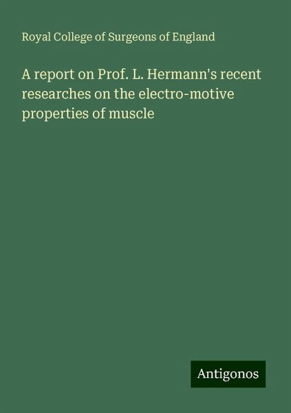 A report on Prof. L. Hermann's recent researches on the electro-motive properties of muscle - England, Royal College Of Surgeons Of
