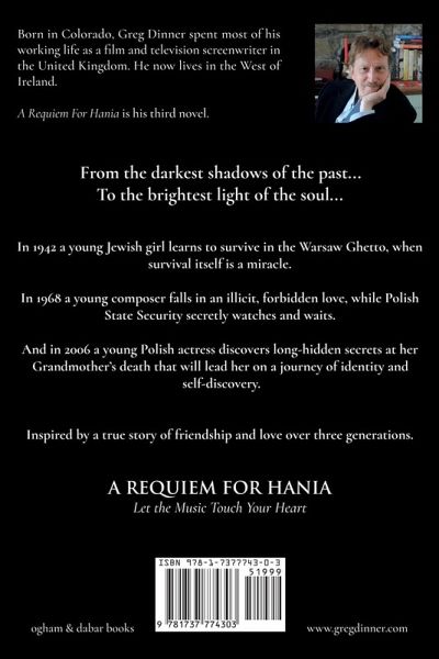 Author and screenwriter Greg Dinner published A REQUIEM FOR HANIA, inspired by a true story of the Warsaw Ghetto and a young Polish woman's search for identity in Poland decades later, in 2022. His other novels include A MURMURATION OF STARLINGS (2016) and NARCISSUS IN UTERO (2019) , both part of his 'Shadow Wolf Chronicles' series inspired by the 'Shadow Wolf' television series he developed in Los Angeles. In 2024 he published his nonfiction WHISPERS OF GHOSTS: DAYS AND NIGHTS UKRAINE about time spent in Ukraine in 2024.Greg Dinner began a long career as a screenwriter and film studio executive in 1981, working at United Artists, MGM, Columbia and Tri Star pictures in Los Angeles, before moving to London in 1984. In 1992 he became a full time produced screenwriter. From 1996-99 he was appointed Head of Drama Development at RTE, Dublin, the Irish State Broadcaster from 1996-99. As a screenwriter in both film and television in the UK, US and Germany, most of his work focused primarily on factually backdropped drama set in conflict zones with an interest in politics, human rights and history. He has worked in the US, UK, Ireland, Germany, France, Norway, India, Italy and Brazil, as well as an executive and a visiting tutor. He is a member of PEN Ireland, WGA, WGGB, BAFTA and a professional member of The Writer's Centre, Ireland. He is a professional advisor to the European Commission's CREATIVE MEDIA for media development and production finance. A dual Irish and US citizen, Greg Dinner now lives in the West of Ireland. FRAGMENTS, a sister-novel to 'A Requiem For Hania', is his fourth novel.