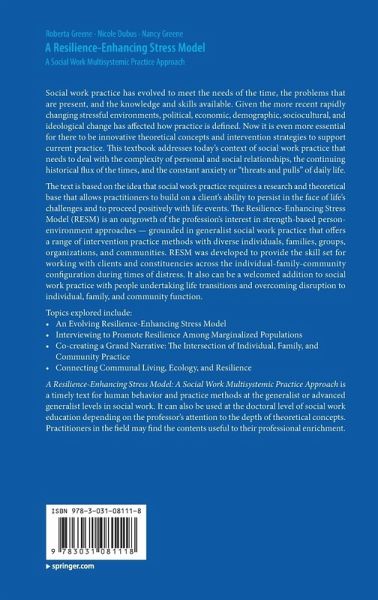 Part I: RESM Research and Theoretical Background.- 1.Research-Informed Social Work Practice.- 2.An Evolving Resilience-Enhancing Stress Model.- Part II: The RESM Method: Narrative Interviewing.- 3.Interviewing: The Four Phases of the Resilience-Enhancing Stress Model.- 4.Interviewing to Promote Resilience Among Marginalized Populations.- 5.Using the RESM Narrative Method to Map Assessment Content.- Part III: RESM Multisystemic Applications.- 6.Co-creating a Grand Narrative: The Intersection of Individual, Family, and Community Practice.- 7.Enhancing Resilience and Functioning Among Older Adults and Their Caregivers.- 8.Fostering Resilience Among Returning Military Personnel and Their Families.- 9.Resilience Practice Strategies for Urbanized Societies.- 10.Connecting Communal Living, Ecology, and Resilience.- 11.Using the RESM in Work With Forced Migrants.
