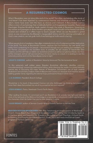 What if Revelation was not about the end of the world? Too often, eschatology (the study of "end times") has been hijacked by controversial theories and timelines of when Jesus will return. Some have even seen the topic as divisive and irrelevant. A Resurrected Cosmos offers a vision of eschatology that is biblically faithful and imaginatively beautiful. Pastor and theologian Brayden Brookshier leads readers through the book of Revelation, focusing on key scenes and passages to show that this apocalyptic book should not be feared, but rather revered and relished as it offers hope to God's people. When we see Revelation's grand vision as one concerning the Messiah's inaugurated victory and the coming culmination of God's new creation, we can grab hold of eschatological truths worth sharing.