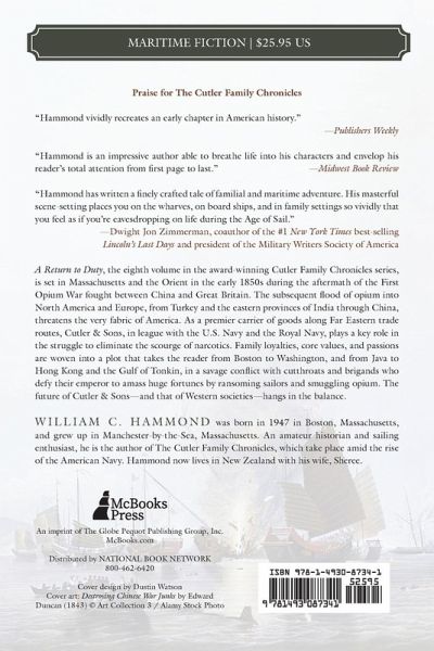 The 8th Cutler Family Chronicles novel is set in Massachusetts and the Far East in the early 1850s as the influx of opium into New England endangers the very fabric of America. Family loyalties, morals, and passions are woven into a plot that threatens to undo not only the prosperity of the seafaring Cutler family, but also those of American society.