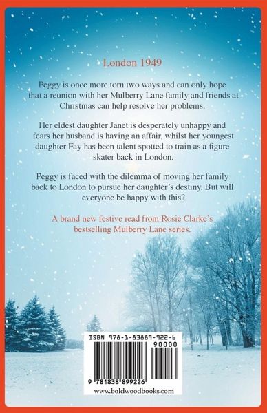 A brand NEW festive read from Rosie Clarke's bestselling Mulberry Lane series. LONDON 1949 Peggy is once more torn two ways and can only hope that a reunion with her Mulberry Lane family and friends at Christmas can help resolve her problems. Her eldest daughter Janet is desperately unhappy and fears her husband is having an affair, whilst her youngest daughter Fay has been talent-spotted to train as a figure skater back in London. Peggy is faced with the dilemma of moving her family back to London to pursue her daughter’s destiny. But will everyone be happy with this?