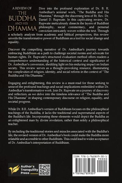 Dive into the profound exploration of Dr. B. R. Ambedkar's seminal work, "The Buddha and His Dhamma," through the discerning lens of Rt. Rev. Dr. Daniel D. Rupwate. In this captivating review, Dr. Rupwate meticulously dissects the layers of Buddhist philosophy, social commentary, and personal conviction intricately woven within the text. Through a scholarly analysis from academic and biblical perspectives, this review unveils the transformative power of Buddhism as a tool for social change and equality. Discover the compelling narrative of Dr. Ambedkar's journey towards embracing Buddhism as a path to challenge societal norms and advocate for human rights. Dr. Rupwate's structured evaluation method offers readers a comprehensive understanding of the historical context and significance of Dr. Ambedkar's conversion, shedding light on his enduring impact on Indian society. This review serves as a thought-provoking resource, illuminating the complexities of religion, identity, and social reform in the context of "The Buddha and His Dhamma." Engaging and enlightening, this review is a must-read for those seeking to unravel the profound teachings and social implications embedded within Dr. Ambedkar's transformative work. Join Dr. Rupwate on a journey of discovery and reflection, as we delve into the timeless relevance of "The Buddha and His Dhamma" in shaping contemporary discourse on religion, equality, and societal progress. While Dr. B.R. Ambedkar's version of Buddhism focuses on the philosophical teachings of the Buddha, it lacks the traditional and supernatural aspects of the Buddha's life. Incorporating these elements would depict the Buddha as an enlightened man by divine revelation, rather than solely a philosophical teacher. By including the traditional stories and miracles associated with the Buddha's life, the revised version of Dr. Ambedkar's book could make the Buddha more relatable and accessible to other Buddhists. This could lead to wider acceptance of Dr. Ambedkar's interpretation of Buddhism.