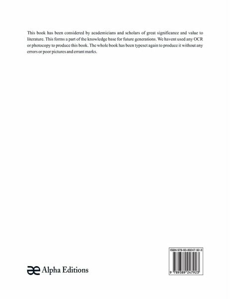 This book has been considered by academicians and scholars of great significance and value to literature. This forms a part of the knowledge base for future generations. We have represented this book in the same form as it was first published. Hence any marks seen are left intentionally to preserve its true nature.