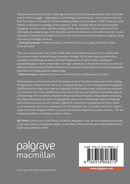 This book draws on the work of one of the sharpest minds of the 20th century, Piero Sraffa. Ludwig Wittgenstein credited him for 'the most consequential ideas' of the Philosophical Investigations (1953) and put him high on his short list of geniuses. Sraffa's revolutionary contribution to economics was, however, lost to the world because economists did not pay attention to the philosophical underpinnings of his economics. Based on exhaustive archival research, Sinha presents an exciting new thesis that shows how Sraffa challenged the usual mode of theorizing in terms of essential and mechanical causation and, instead, argued for a descriptive or geometrical theory based on simultaneous relations. A consequence of this approach was a complete removal of 'agent's subjectivity' and 'marginal method' or counterfactual reasoning from economic analysis - the two fundamental pillars of orthodox economic theory.