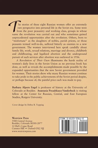 The stories of these eight Russian women offer an extremely rare perspective into personal life in the Soviet era. Some were from the poor peasantry and working class, groups in whose name the revolution was carried out and who sometimes gained unprecedented opportunities after the revolution. Others, born to ?misfortune? as the daughters of nobles, parish priests, or those peasants termed well-to-do, suffered bitterly as enemies to a new government. The women interviewed here speak candidly about family life, work, sexual relations, marriage and divorce, childbirth and childbearing, and legalized abortion and the underground pursuit of such services after abortion was outlawed in 1936.As no previous book has done, A Revolution of Their Own illuminates the harsh reality of women's daily lives in the Soviet Union as well as reveals the accomplishments made possible by the expanded opportunities that the new Soviet government provided for women. Their stories show why many Russian women continue to take pride in the public achievements of the Soviet period despite, or perhaps because of, the painful price each was made to pay.